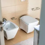 Sunrise - The Twin Villa By Pikhost includes a bathroom with a bidet, a walk-in shower, and a separate toilet. There are hairdryers, toiletries, and bathrobes for guests' comfort.